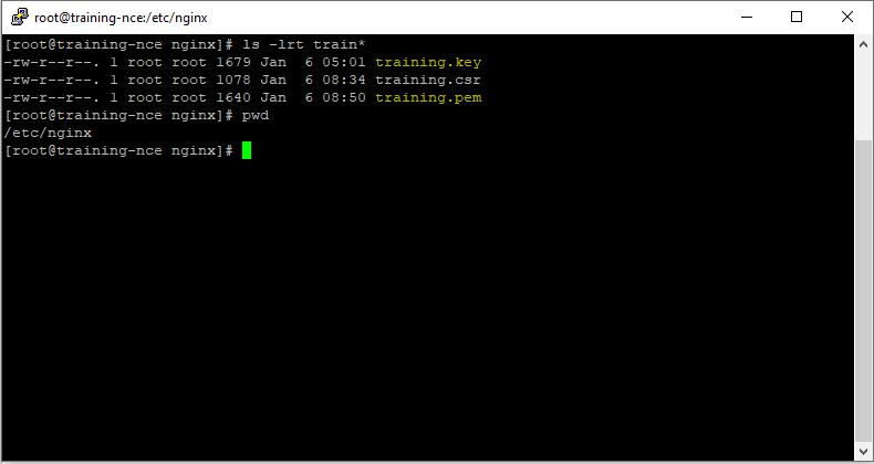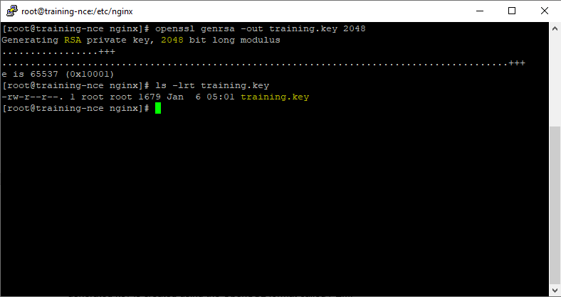 A .csr file will be generated after using the above command. The training.key file will be used to generate a certificate request.