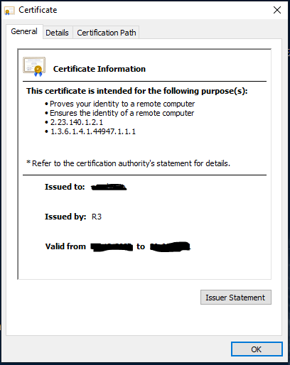 Validate the certificate with correct URL for which certificate is applied. View the certificate for that certificate. By clicking on the lock icon in web browser and click Certificate to see the certificate on the URL.